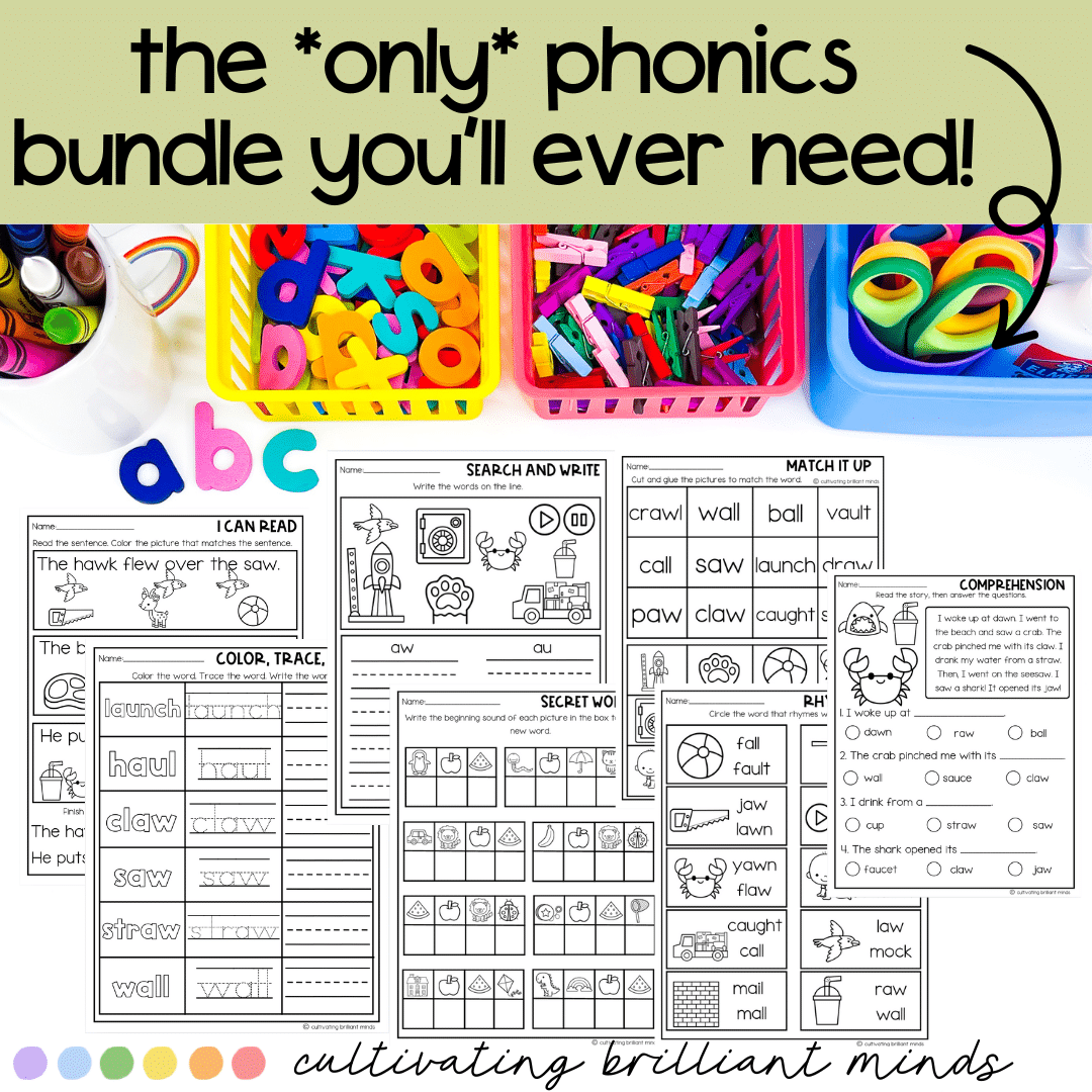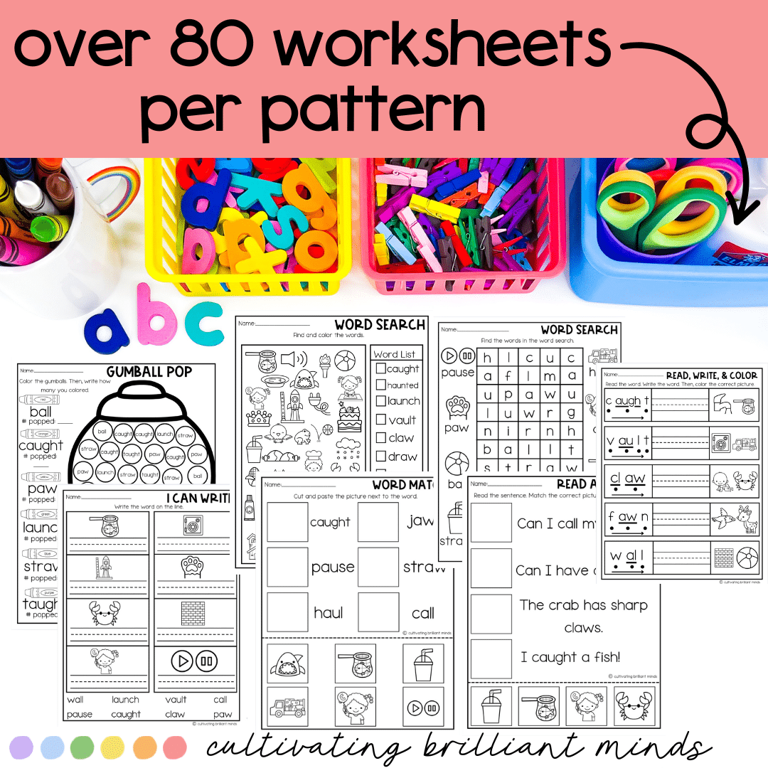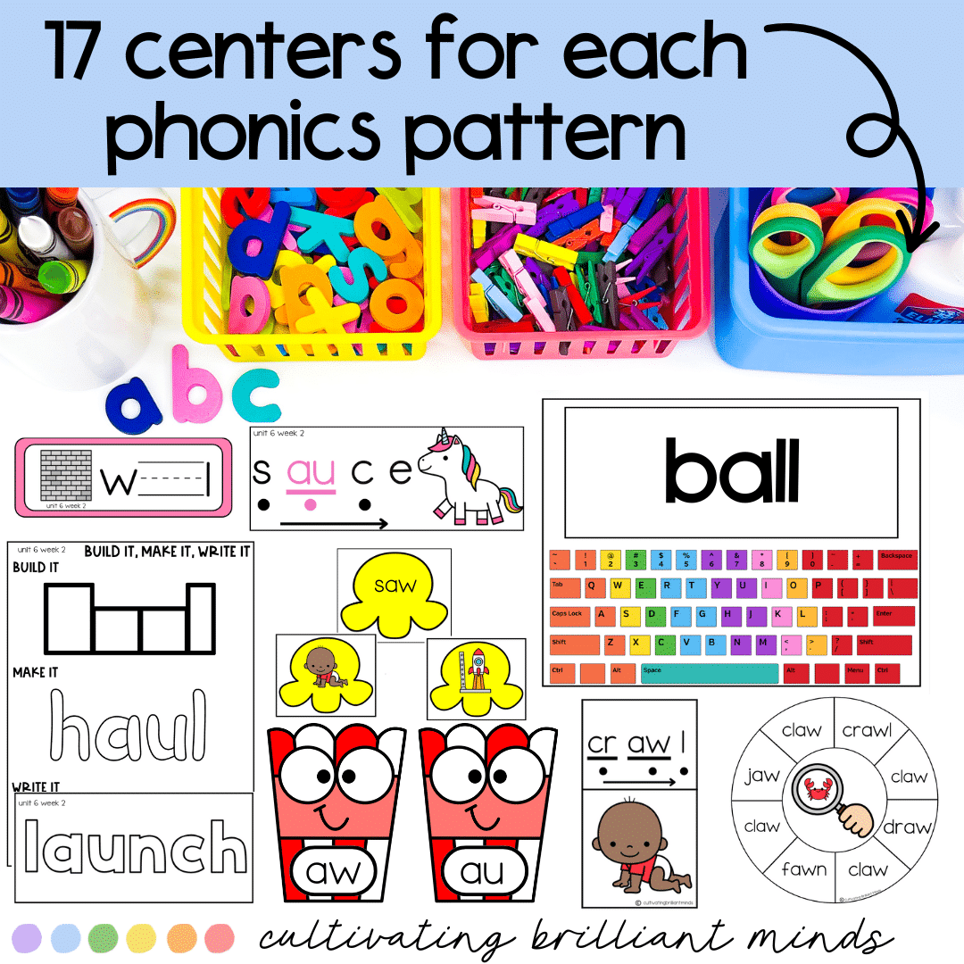 Are you guilty of having worksheets for every center? (don’t worry – I was, too!). This is why I created these hands-on centers that focus on phonics patterns and motor skills. With a mixture of fun worksheets and hands-on activities, your students will learn their phonics patterns while staying engaged (which also decreases behavioral problems – WIN-WIN!!)