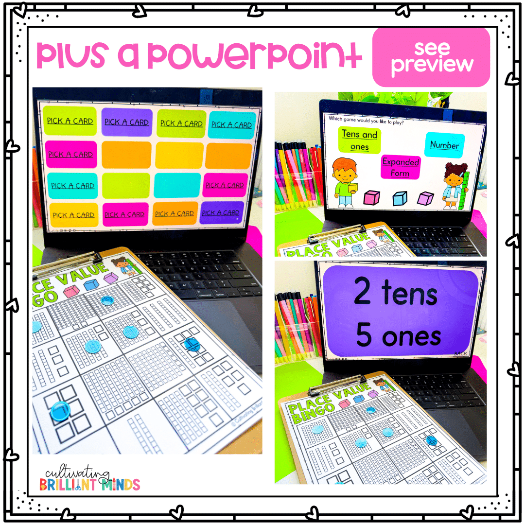 Get your students practicing place value skills like pros with this fun place value bingo game! These are easy to differentiate – just choose from tens and ones, the number, or expanded form. These place value activities are so fun that your students won’t even realize they are learning!