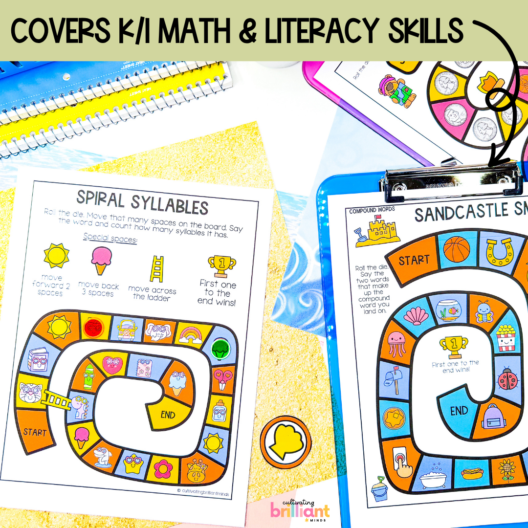 Printable End of Year Summer Board Games Math & Literacy Games Kindergarten 1st