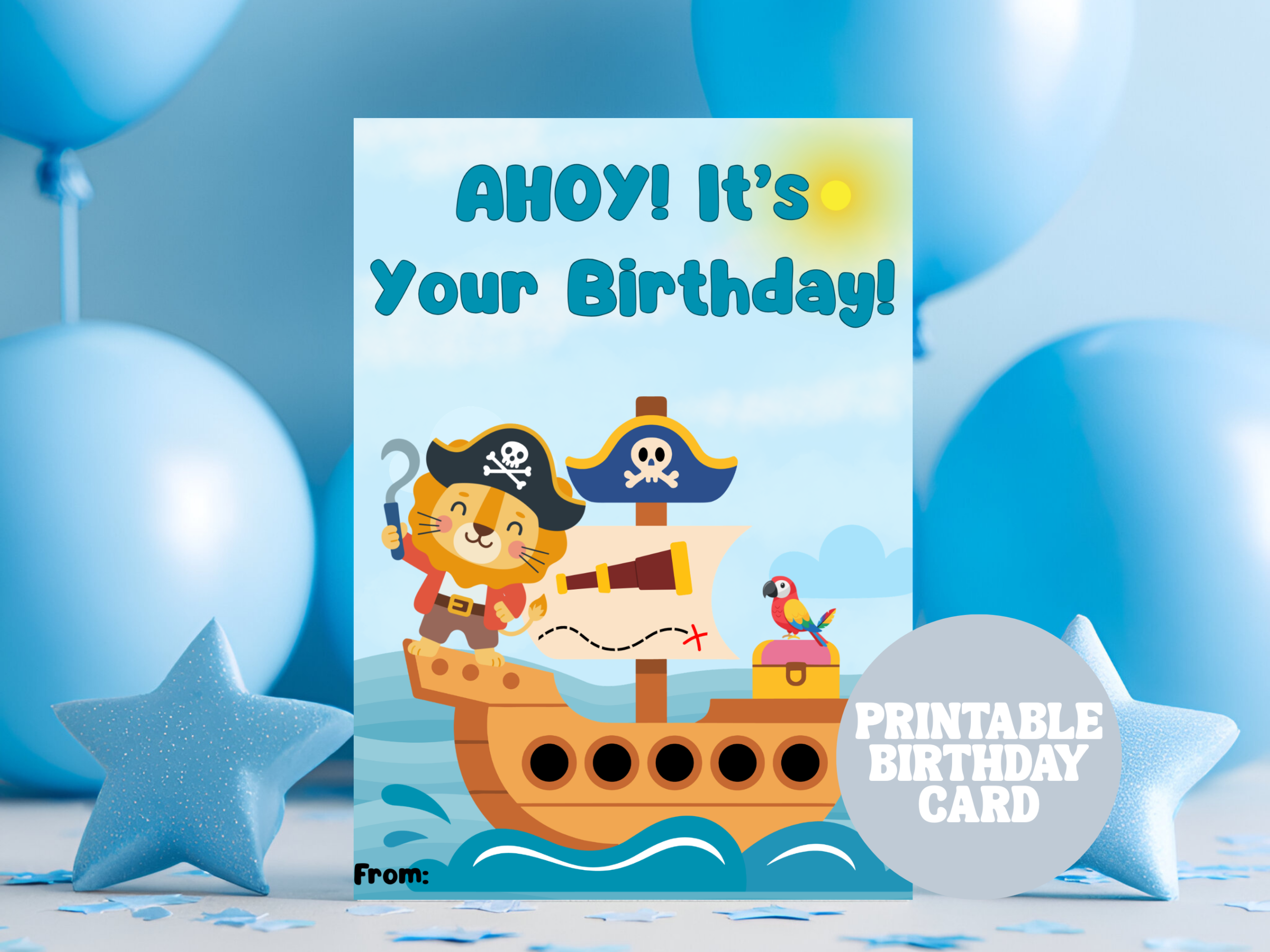 Printable Pirate Birthday Card for Girl, Boy, Birthday Greeting Card 4×6 5×7 8.5×11 Digital Download Birthday Card For Friend Birthday Party