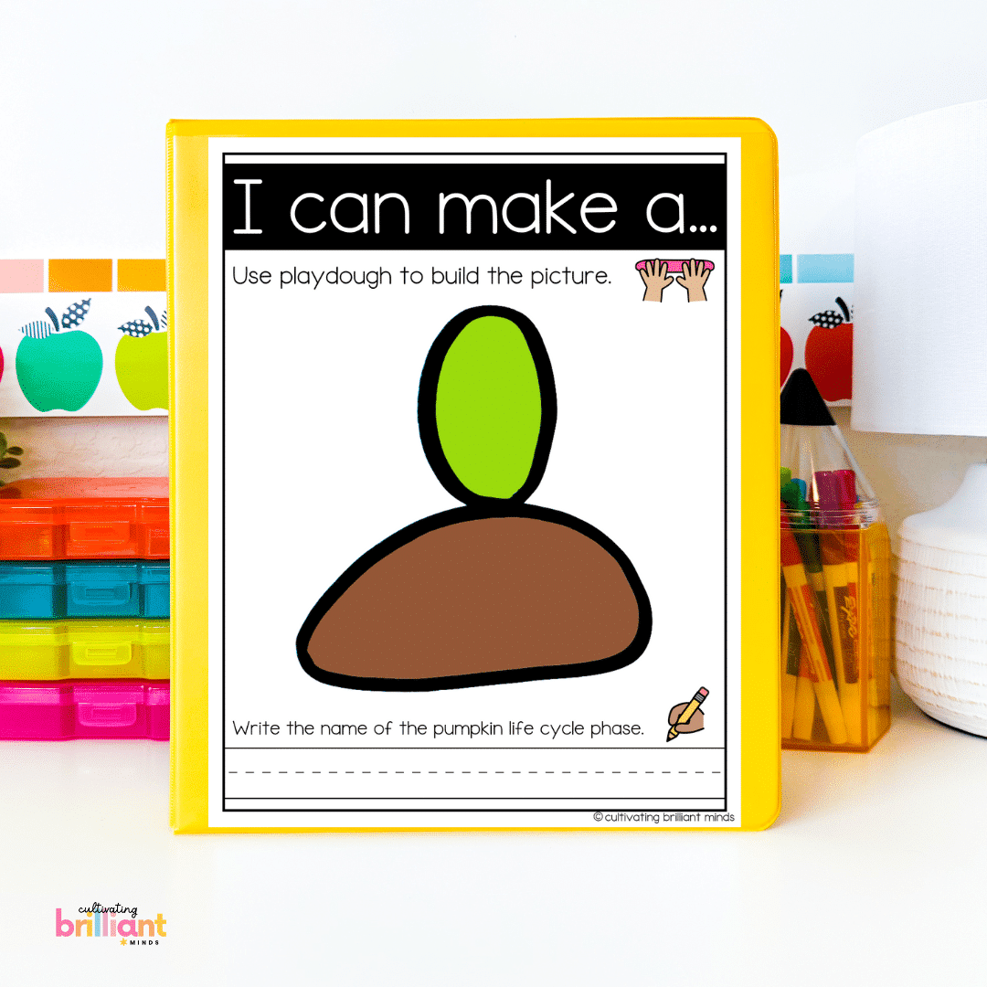 VERSION 3: Students will use dough to make the pumpkin life cycle phase and then write the name of it.