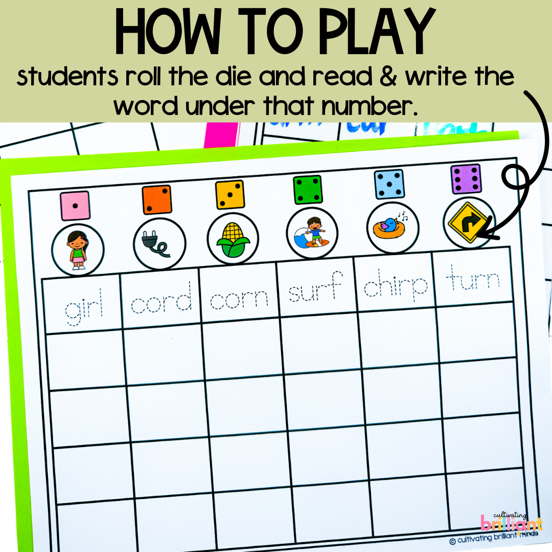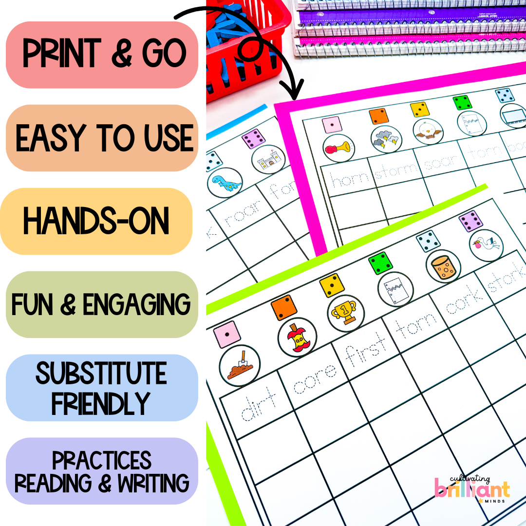 Get your students reading and writing words with R-Controlled Vowel words with these Phonics Read and Write Board Games! Featuring decodable R-Controlled words, these games are just what you need to practice reading and writing with this phonics pattern.