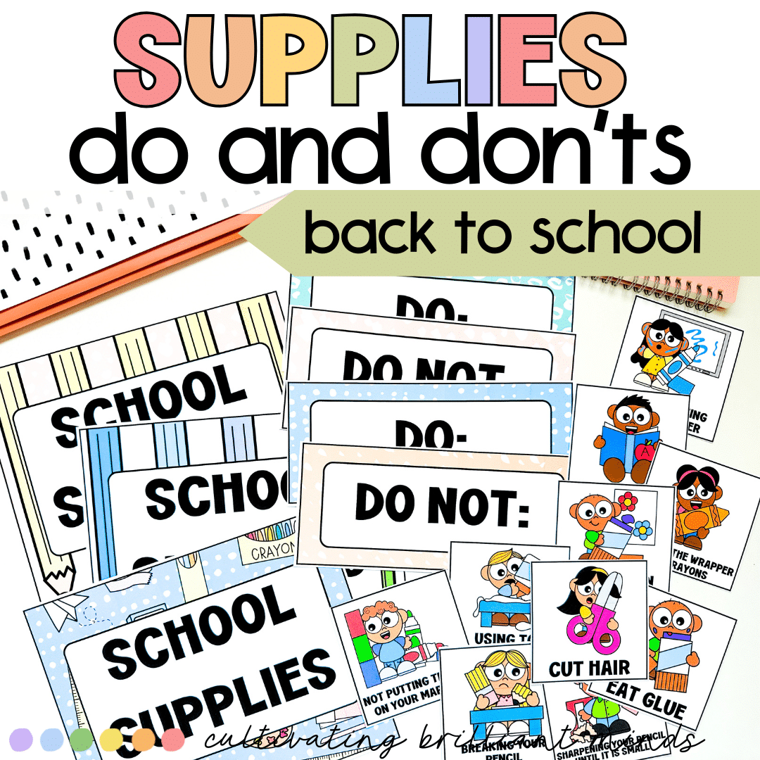 Are you tired of going through so many school supplies every year? Do you have to use your own money to replace them? My School Supplies Do and Don’t’s is the perfect way to teaching students how to properly take care of their school supplies so they can last for the entire year!