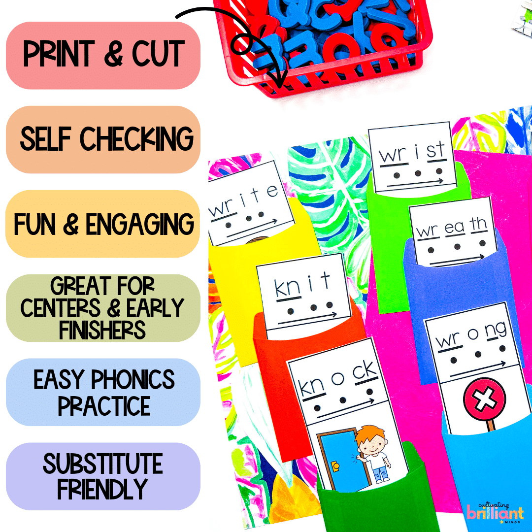 Get your students reading Silent Letters Words like pros with these fun and engaging self checking mystery word phonics centers! Featuring 20 Silent Letter Words, your students will be decoding and reading diphthongs in no time!