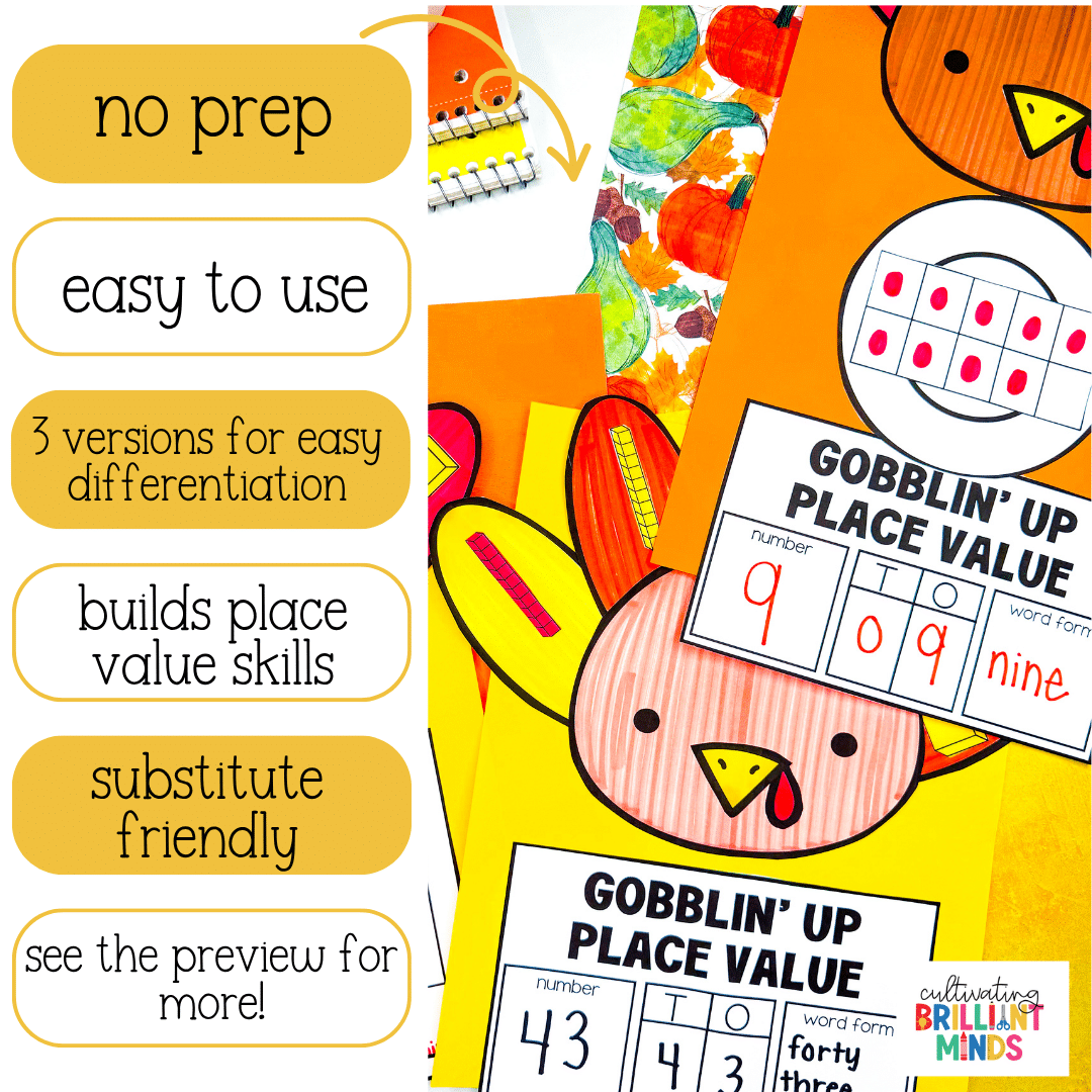 Keywords: Kindergarten | First Grade | Second Grade | Place Value | Thanksgiving Activity | Thanksgiving Craft | Place Value Craft | Math Craft | Math Activity