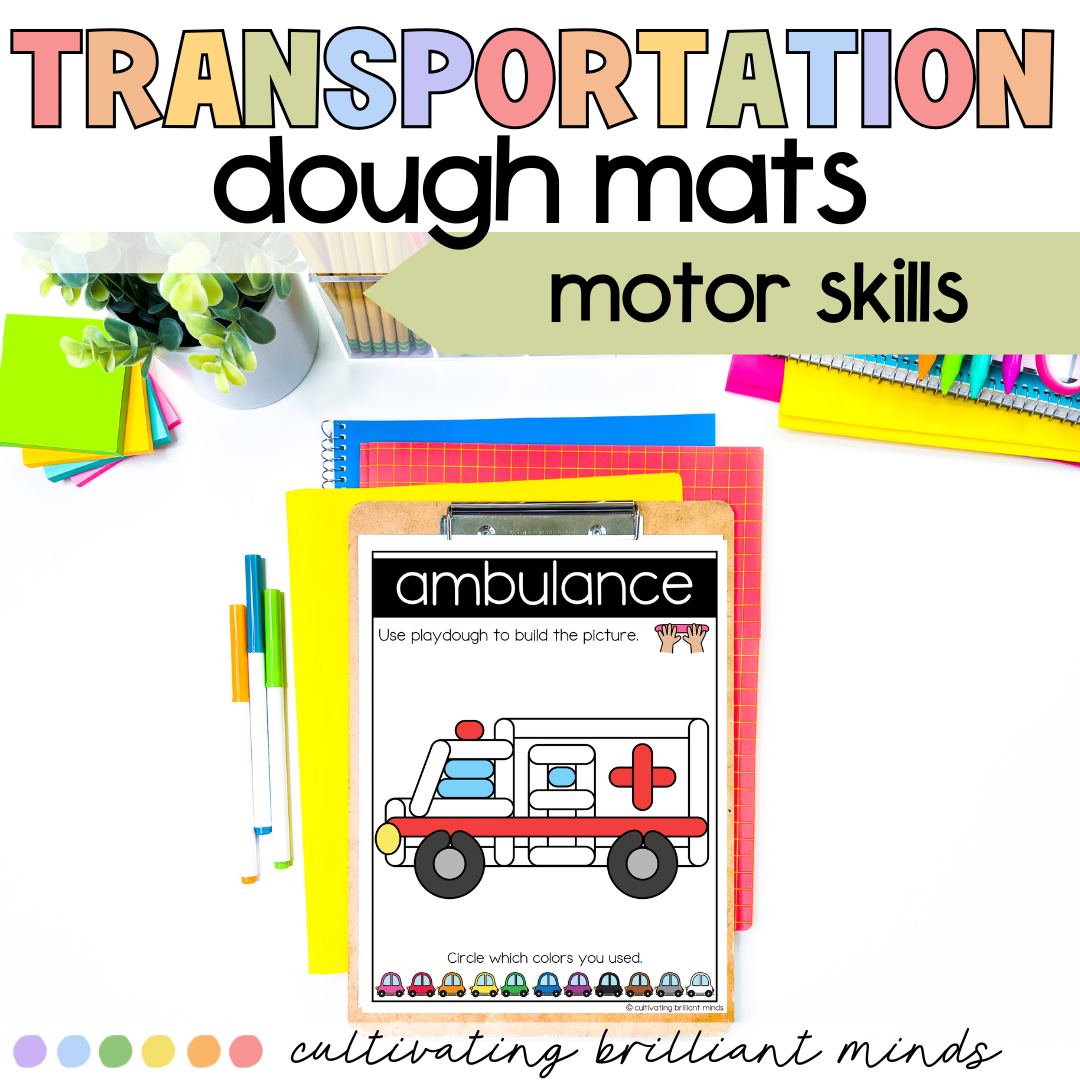 Are you looking for a fun way to improve fine motor skills? These Transportation Dough Mats are the perfect addition to any preschool, kindergarten, or first grade classroom! Use these dough mats as morning work, in morning tubs, or as a center! These are perfect for all your vehicle lovers!