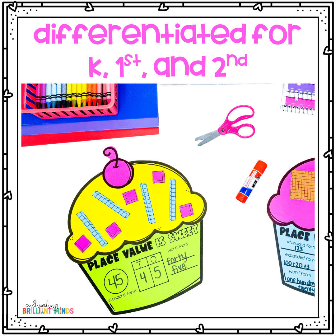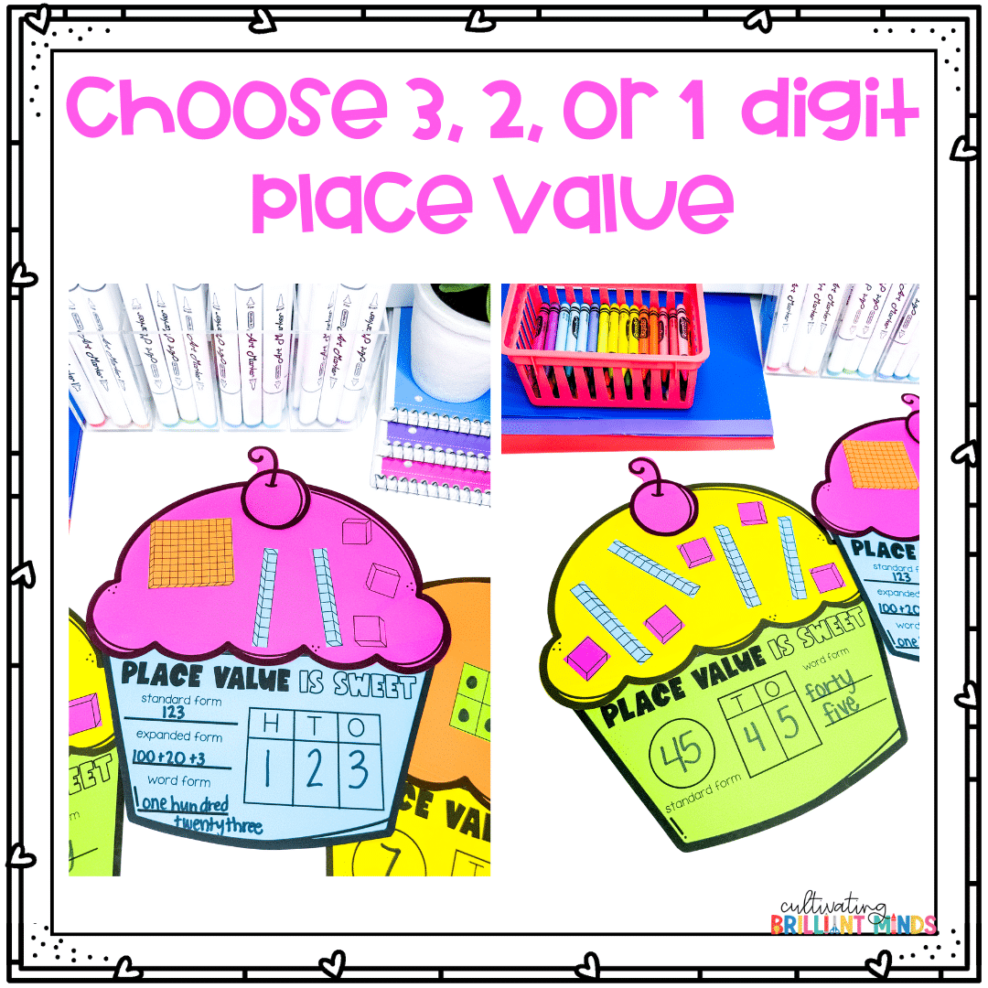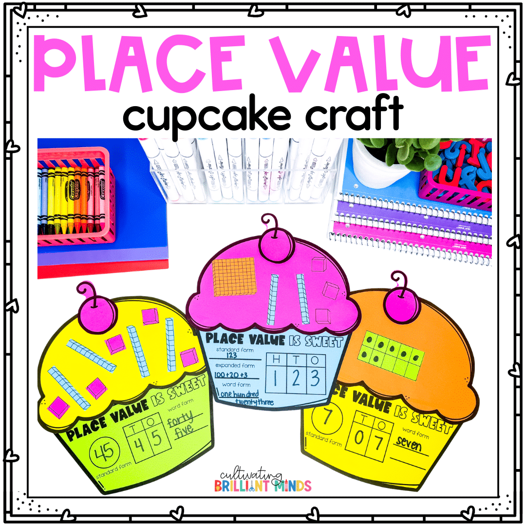 This February Cupcake Place Value Activity will be a hit with your kindergarten, first grade, & second grade students this February! Create a cute cupcake while practicing essential math place value skills! These also make the cutest bulletin board display or door decor when completed!