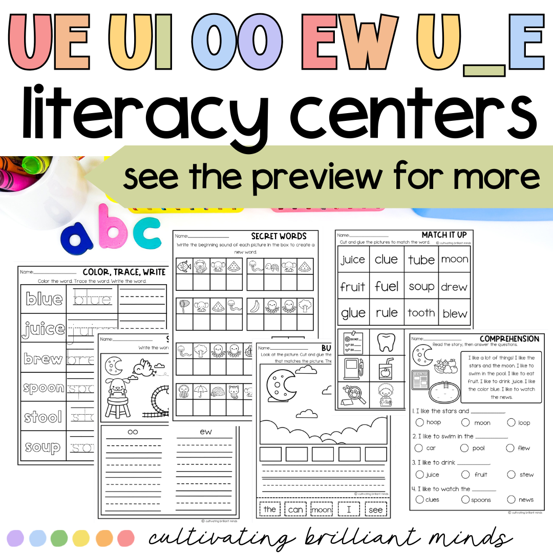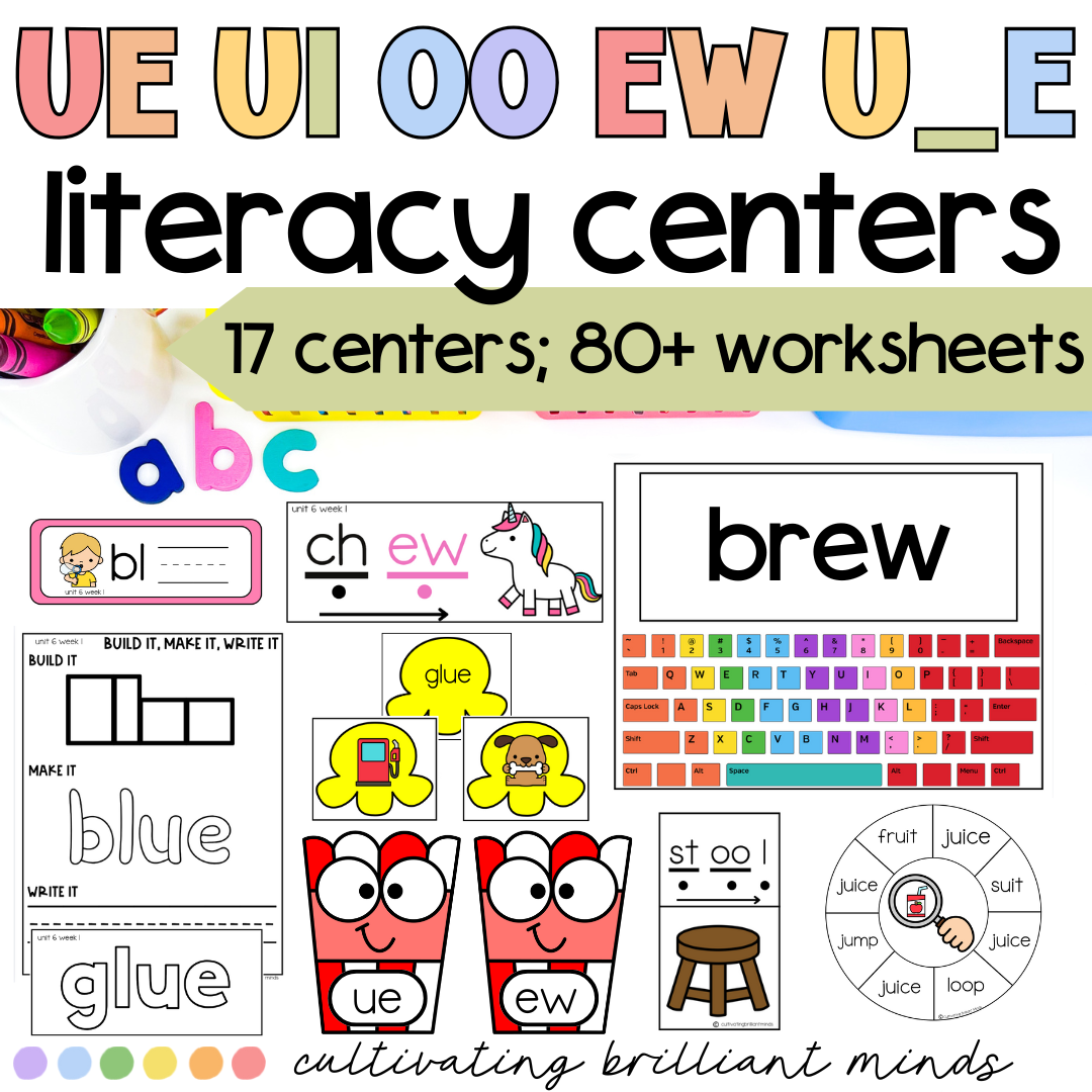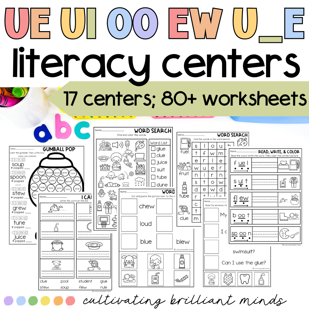 Variant Vowel U: UE UI U_E EW Phonics Centers & Worksheets | Phonics Activities