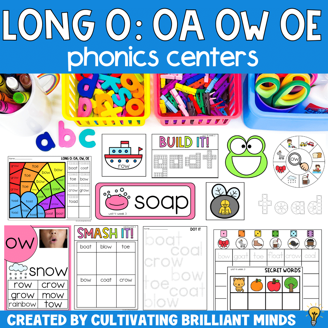 Are you looking for fun, hands-on, and engaging Long O (oa, ow, oe) phonics literacy centers that align with Science of Reading? My phonics centers are just what you need!