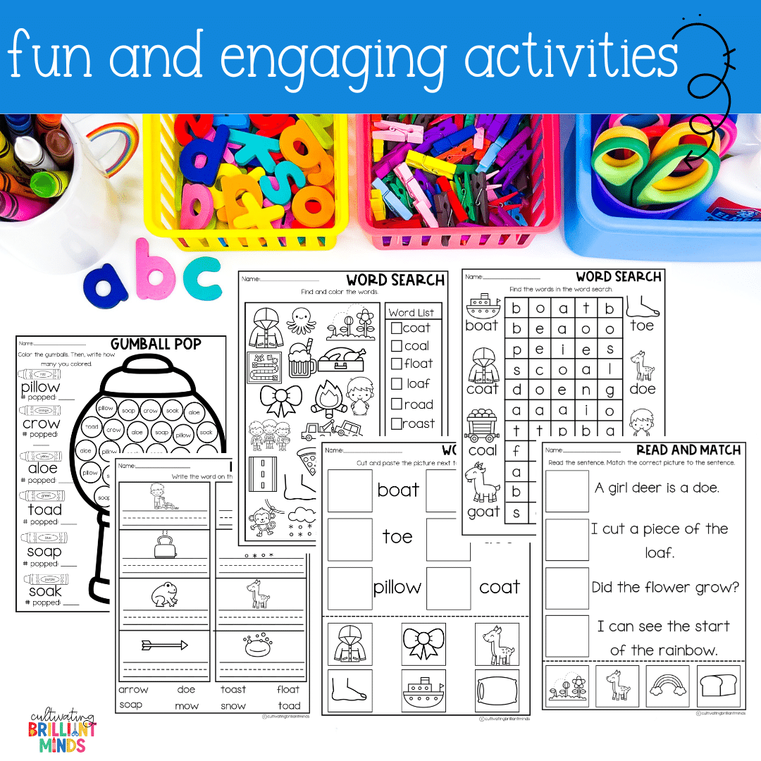Vowel Teams Phonics Centers & Worksheets | Long O: OA, OW, OE Phonics Activities
