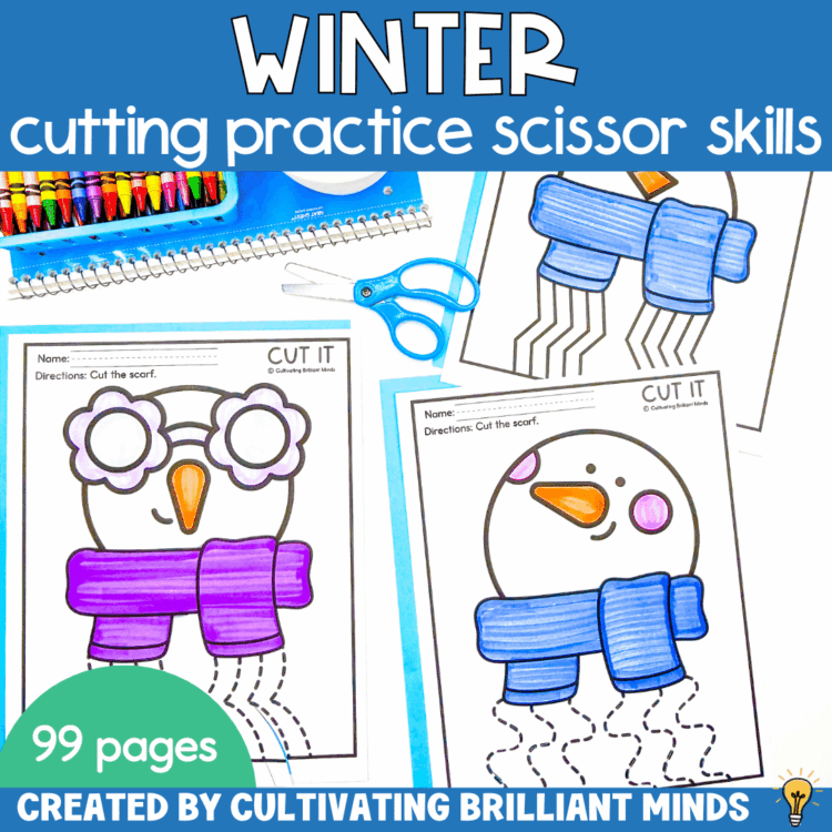 - 50 pages of winter cutting practice with multiple types of lines (zigzag, wavy, curved, etc.)