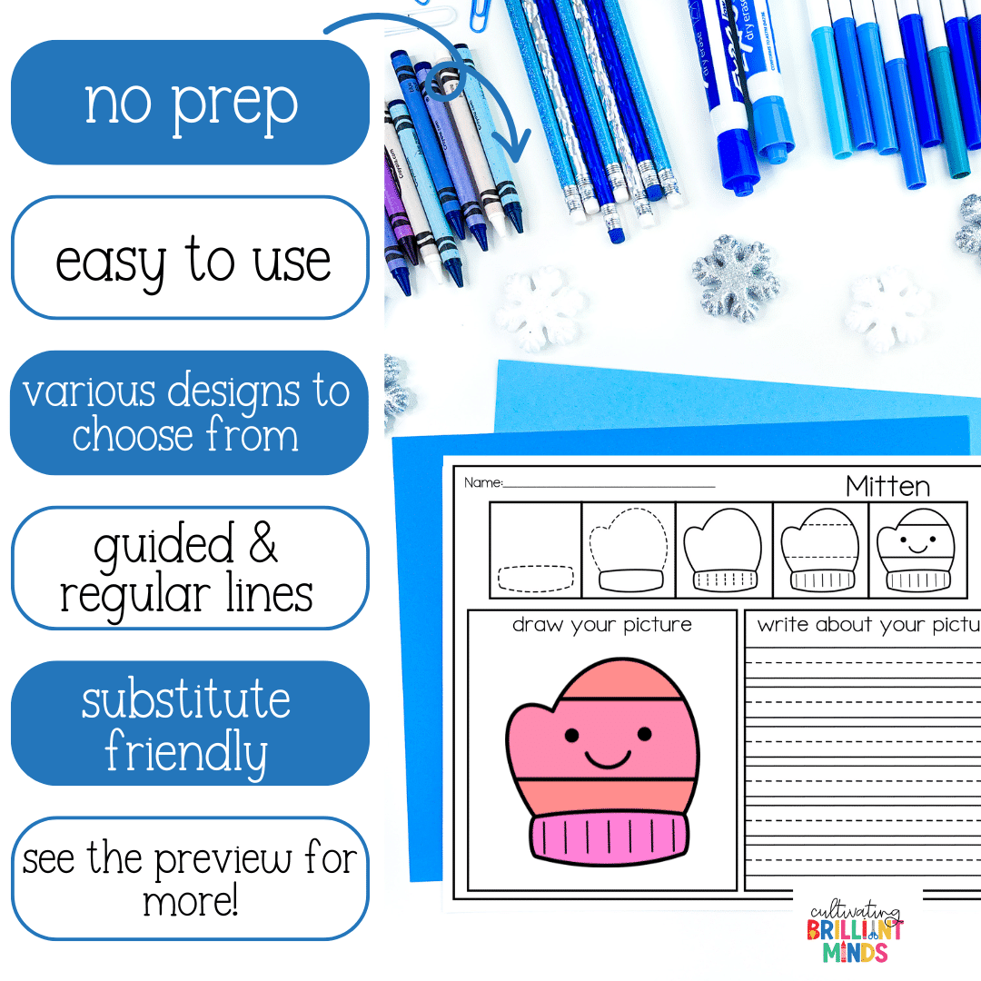 Build your students’ writing confidence with these fun Winter Directed Drawing activities! These no prep activities will encourage students to be creative and increase their writing confidence. Featuring 6-step directed drawings and guided or regular lines, this Winter directed drawing resource is perfect for students in kindergarten, first grade, and second grade.