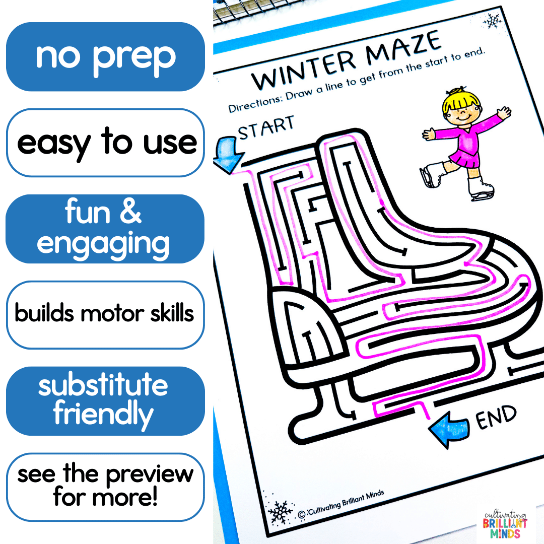 Get your students building motor skills like pros this winter with these fun winter-themed fine motor skill mazes! Your students will love going through these mazes with these hands-on and engaging worksheets that will help build the muscles in their hands and fingers. Use these fun motor activities for morning work, morning tubs, centers, or sub plans!