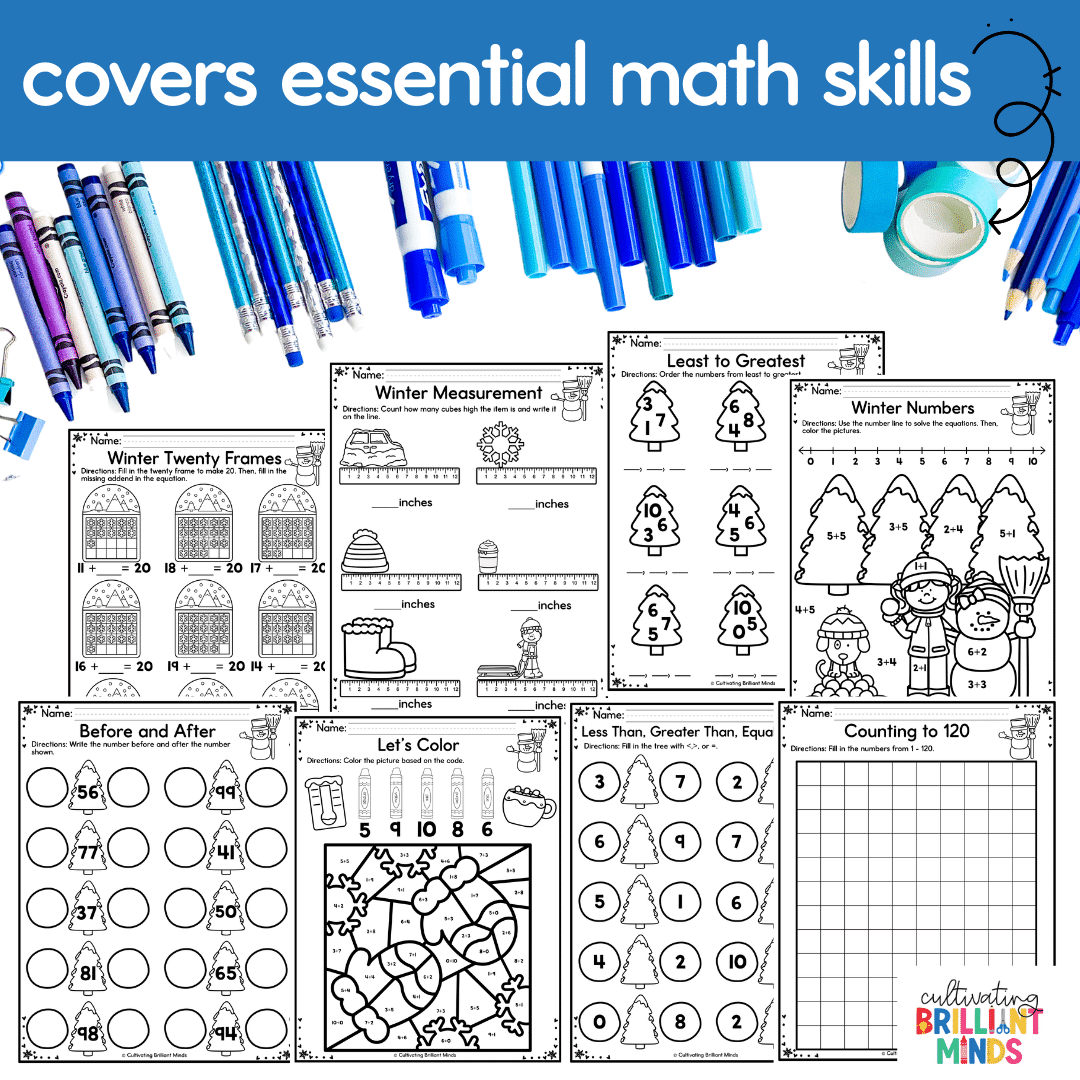 Keywords: Winter Worksheets | Math | Kindergarten | Winter Activities | First Grade | No Prep Math Worksheets