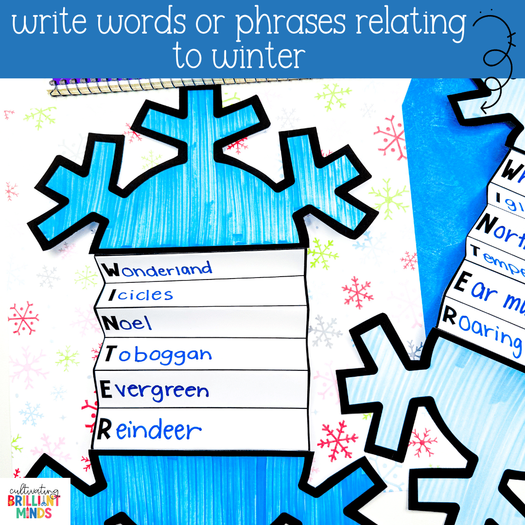 Keywords: Kindergarten | First Grade | Second Grade | Acrostic Poem | Winter Craft | Winter Activity | Snowflake Craft