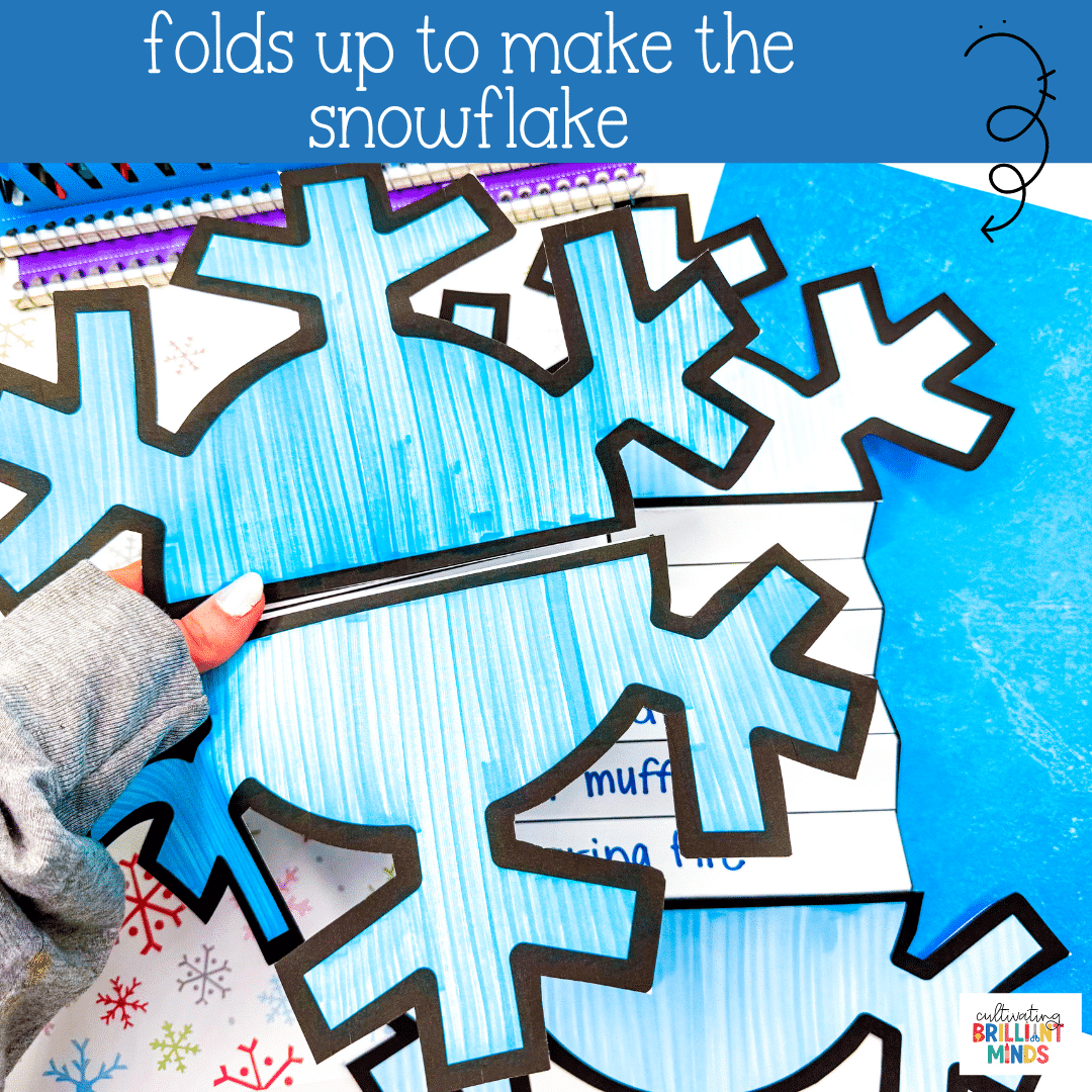 Students will fill in the acrostic poem and assemble the craft. Students can fold the acrostic poem on the lines so that the snowflake can close.