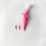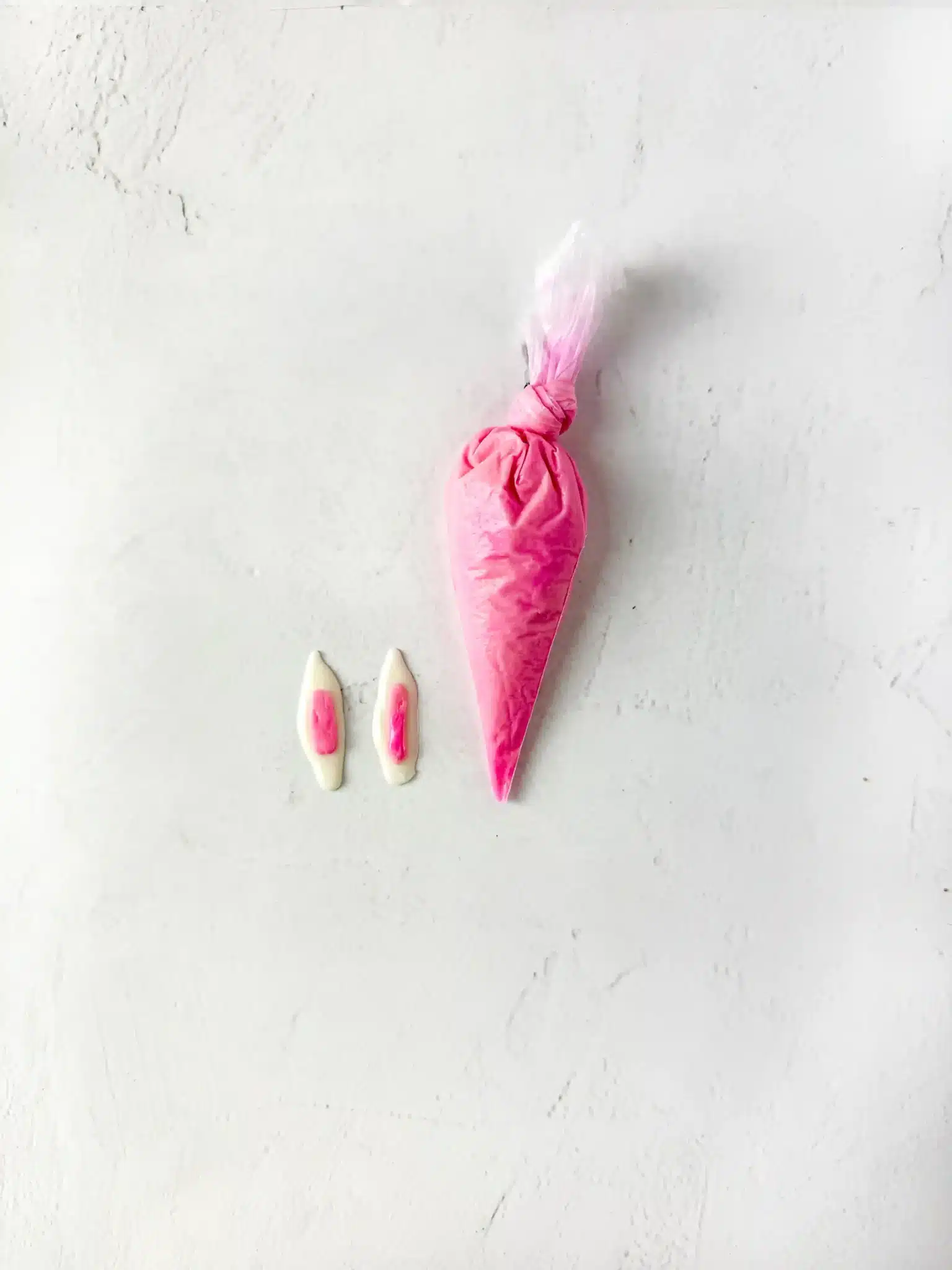 pink melted chocolate in a piping bag white pink chocolate piped on top of white chocolate