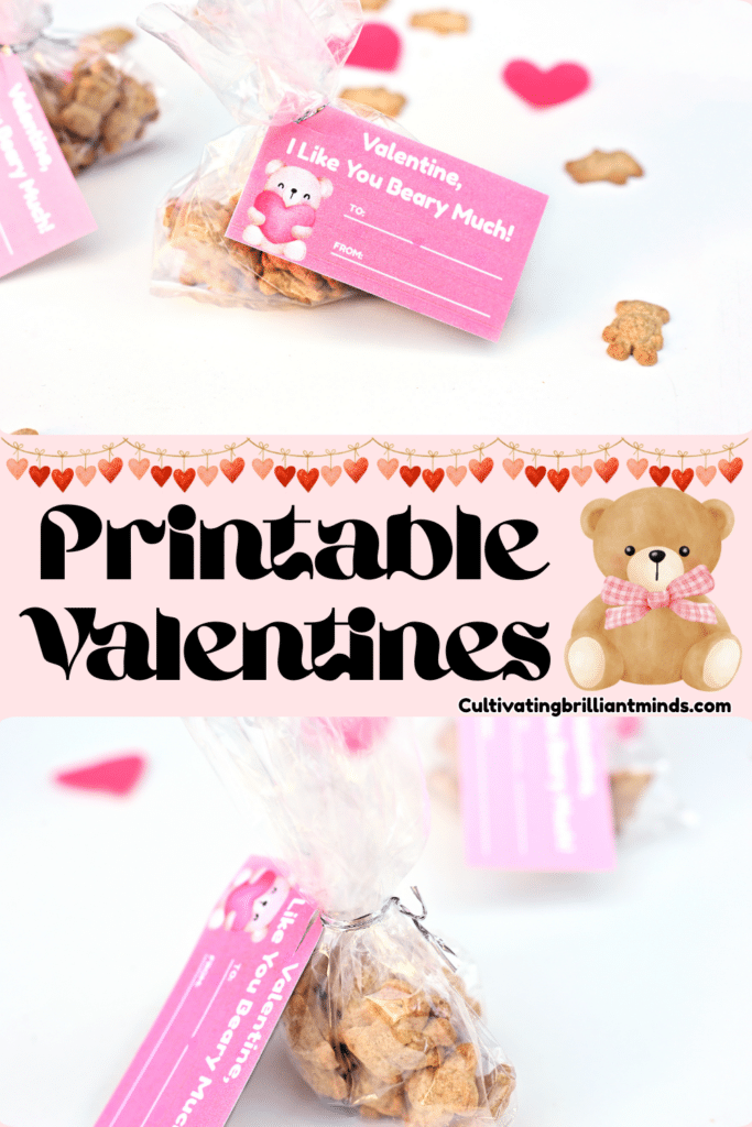 Adding a personal touch is a great way to make the printable valentine cards memorable. Kids can write their friends’ names on each card or include a short note. Different colored ribbons or strings can be used to match classroom themes or favorite colors. And letting kids pick their favorite flavor of Teddy Grahams just adds one more layer of originality to these cute DIY valentine cards.
