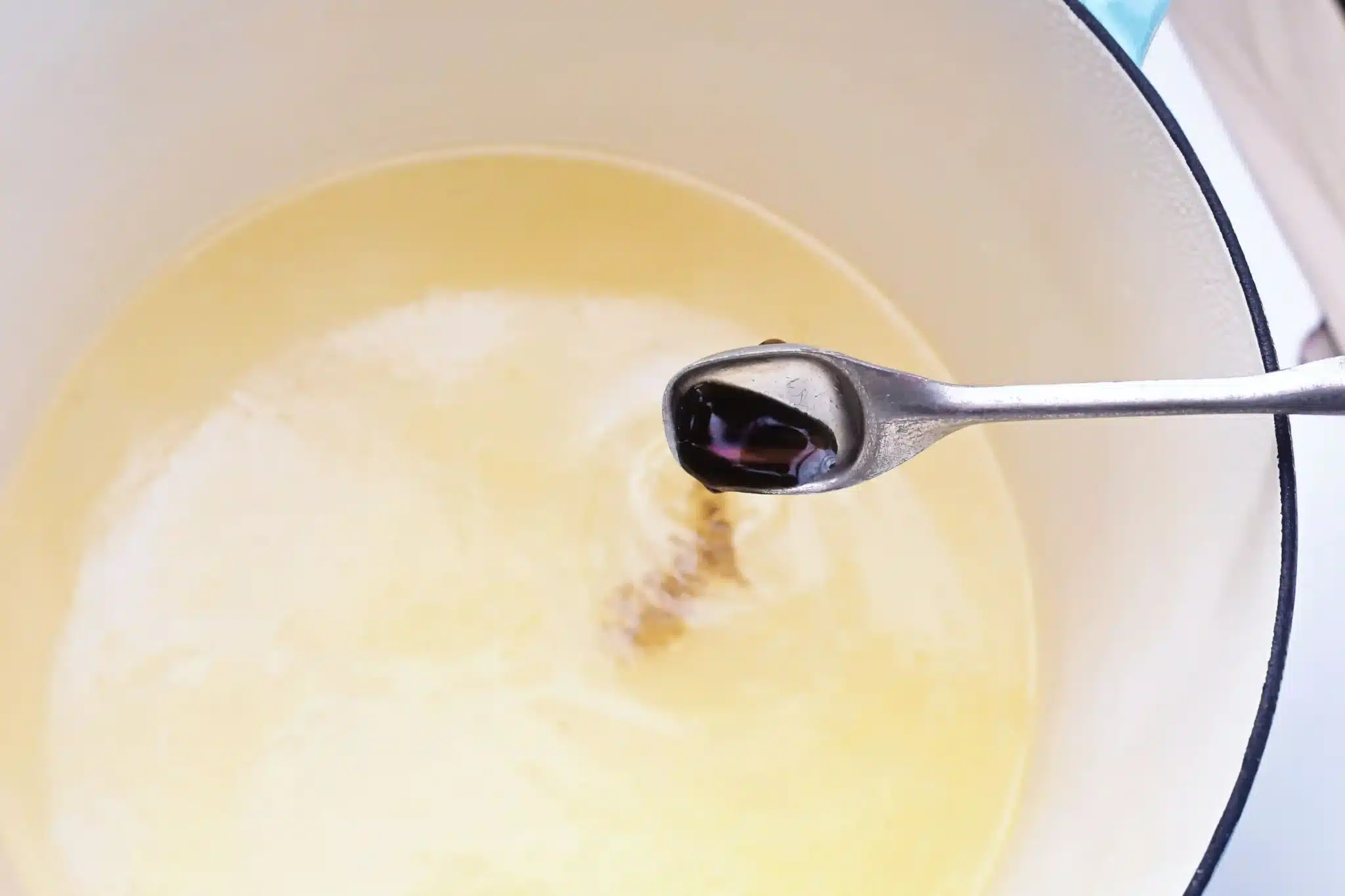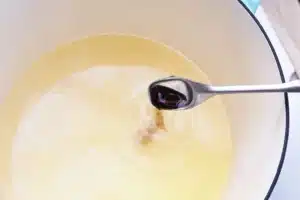 adding vanilla to the sugar, water, corn syrup, salt, and butter mixture