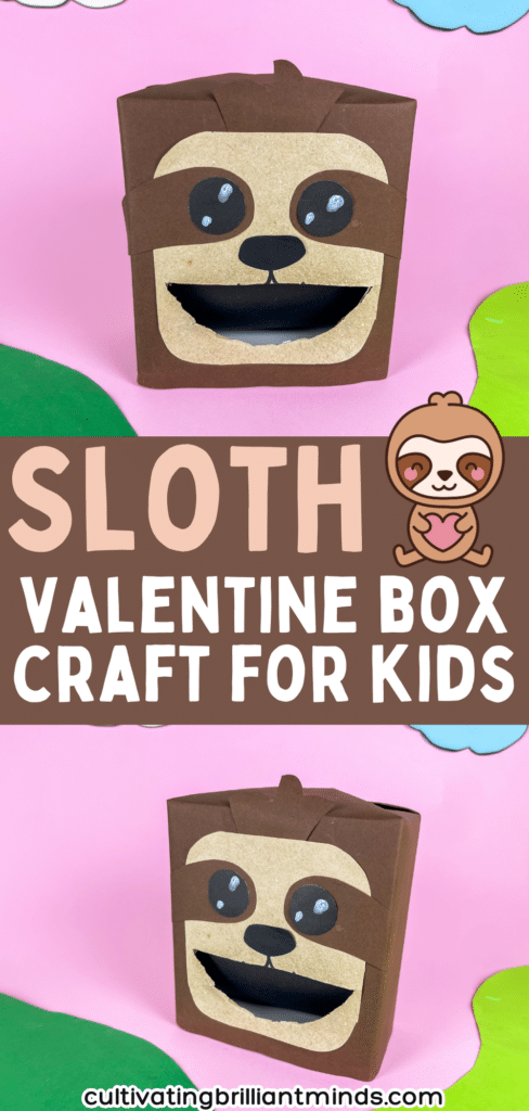 What I especially like about this sloth box is that it feels different from a lot of high-energy Valentine projects. It has a softer vibe. The colors are warm, the face is gentle, and the overall look feels relaxed. That tone really resonates with kids, and it also opens the door to conversations about emotions, patience, and taking your time—things we don’t always pause to talk about in February.